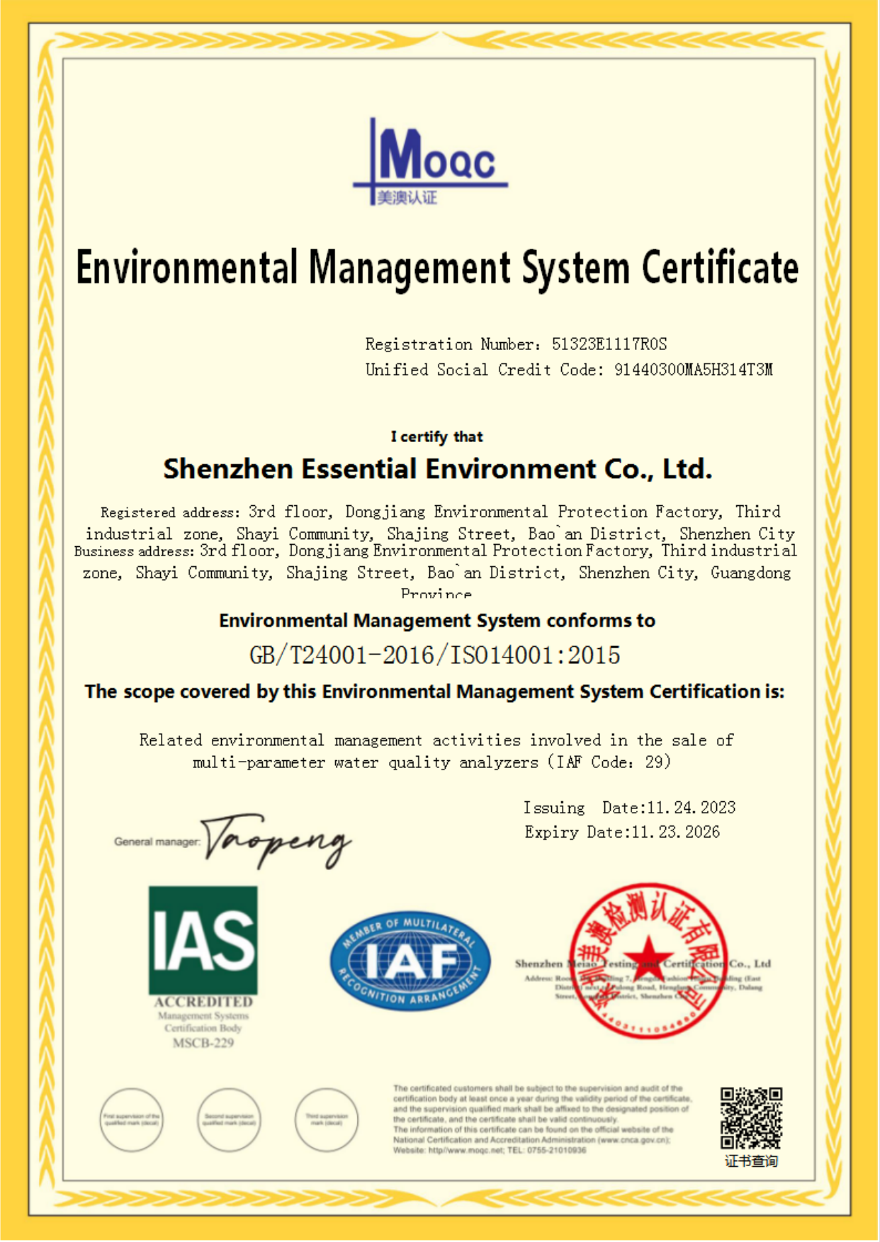 Environmental Management System Certificate